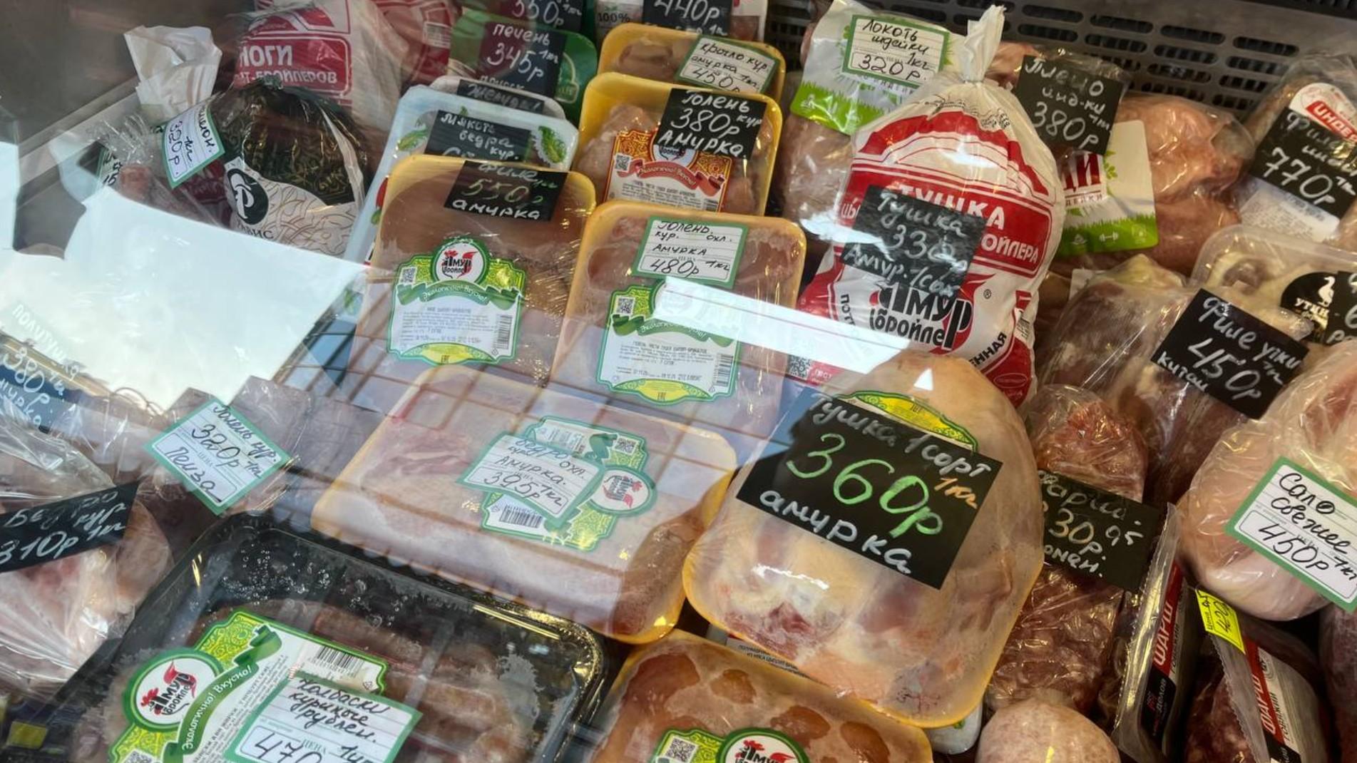 - крыло «Амурский бройлер» — 450 рублей за килограмм (ранее 288 рублей);