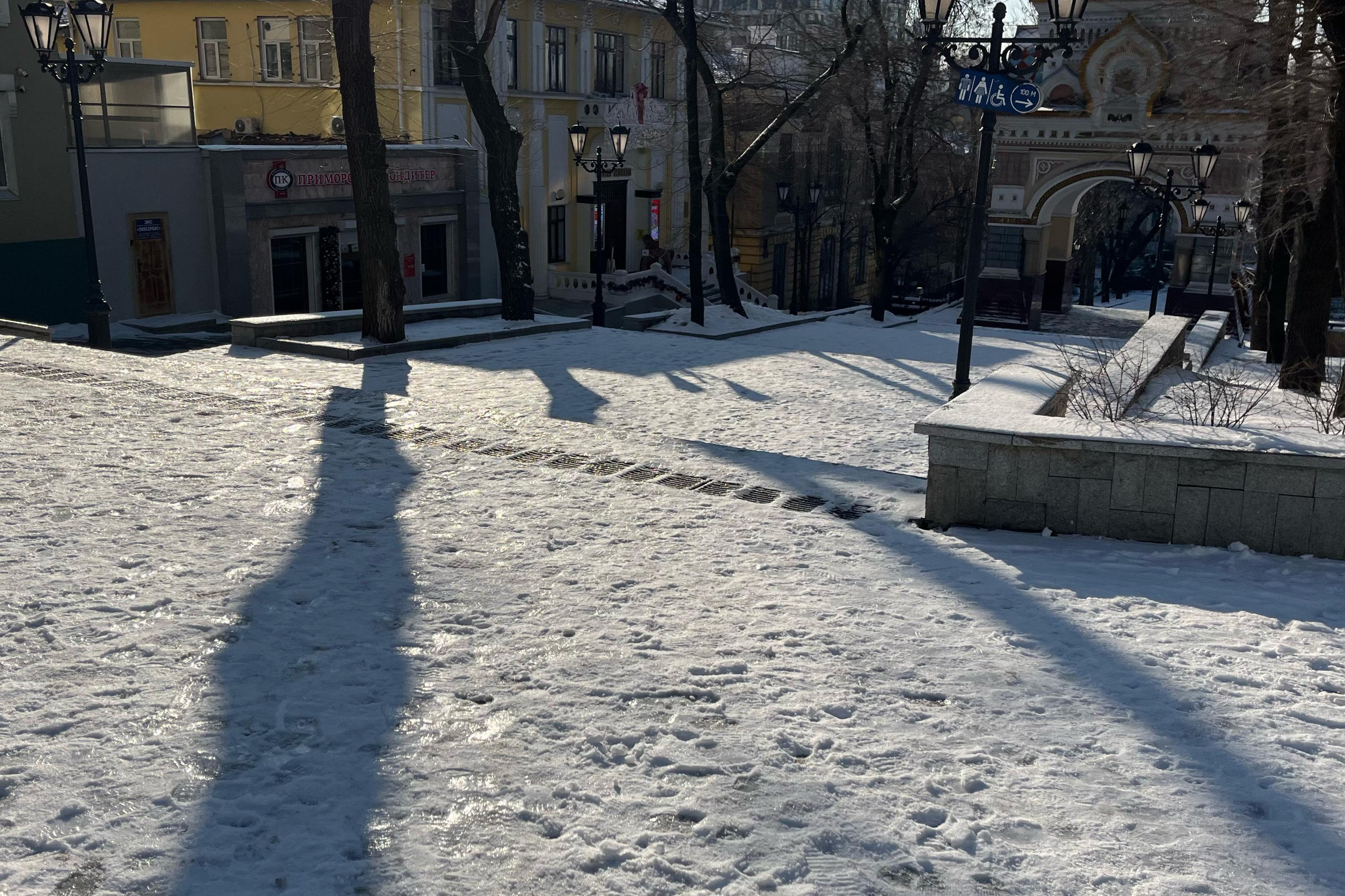 Обработка тротуаров во Владивостоке не остановила ледяной хаос