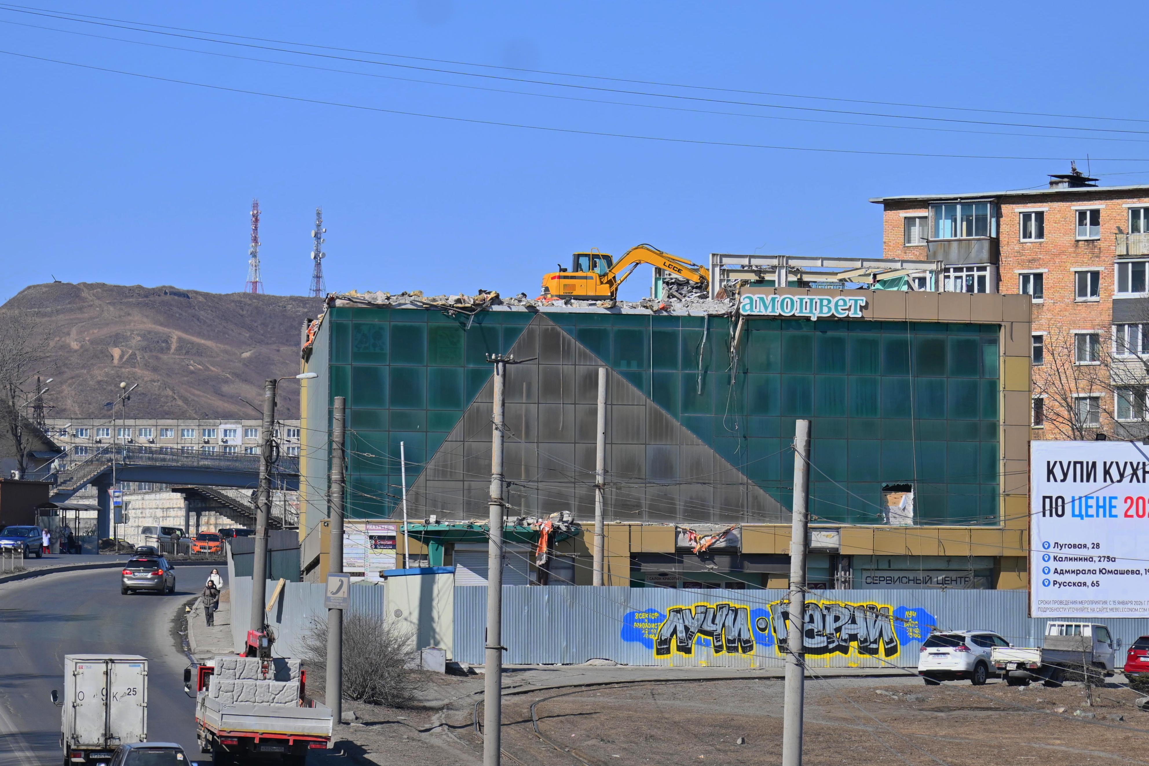 Утром 10 марта во Владивостоке начался разбор торгового центра «Самоцвет», расположенного у трамвайной остановки «Баляева».