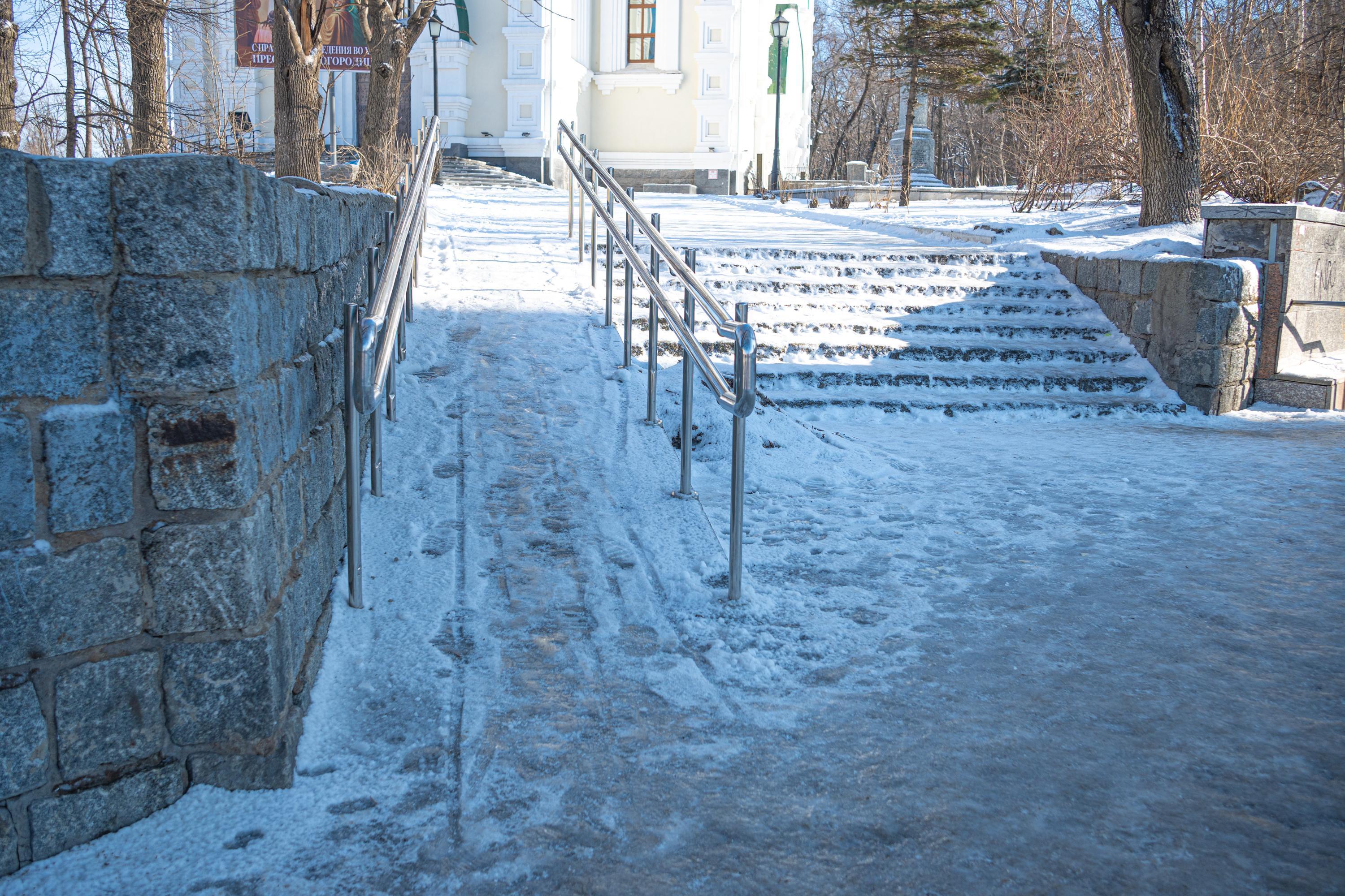 Были зафиксированы нарушения по нескольким адресам: на улице Острякова, 7а обнаружили толстый ледяной наст, а на Океанском проспекте, 76а и 70 — дворы, заваленные снегом. Ни рабочих, ни уборочной техники на местах не оказалось.