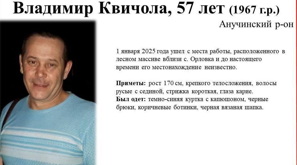 Мужчина перестал выходить на связь в декабре 2024 года, когда отправился на работу в поселок Орловка Анучинского муниципального округа. Следственный комитет возбудил уголовное дело, однако обращения родственников и распространение в интернете личных данных с фотографией не помогли установить его местонахождение.