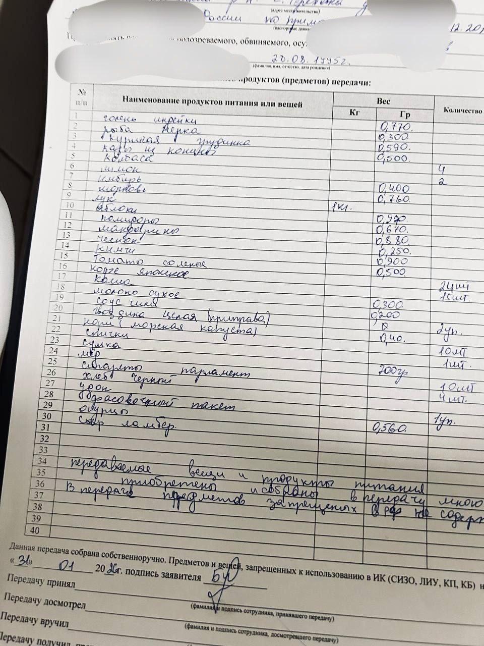 Супруга арестованного обратилась за помощью в телеграм-канал «Максим Чихунов. Политик и правозащитник». «Ситуация такая: я 31.01.2026 года по живой очереди передала мужу передачу в СИЗО-1, сегодня пришло от него письмо — он получил ее только сегодня, и то половина продуктов в испорченном виде, от них он отказался», — написала женщина.