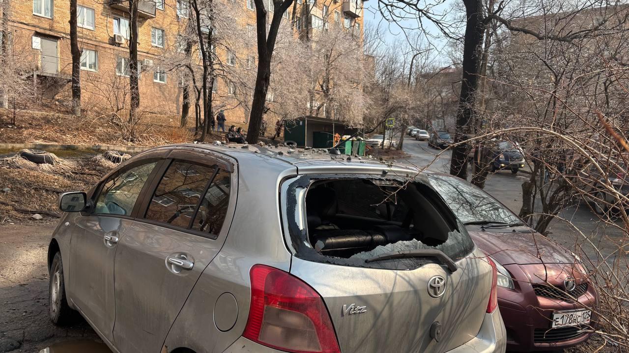 От стихии пострадали и автомобили. Наиболее серьезно повреждена Toyota Vitz, припаркованная неподалеку. Владелец машины Александр рассказал, что вернулся домой после ночной смены и только уснул, когда ему позвонили и попросили срочно выйти на улицу.