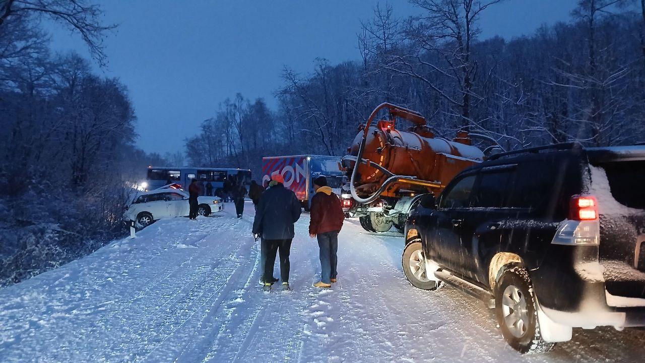 Массовая авария из-за гололеда парализовала трассу в Приморье