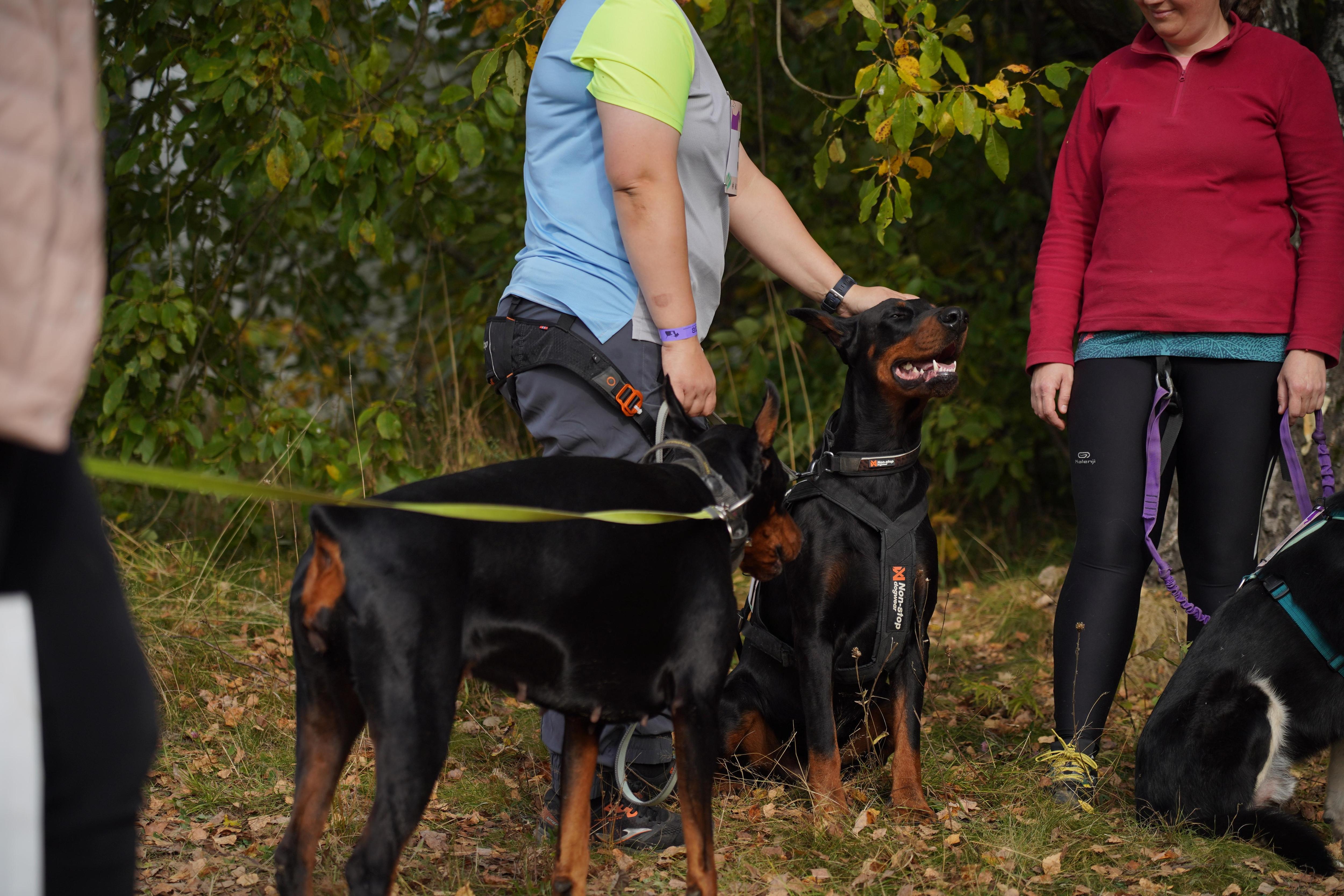 Тот же мужчина сталкивался с этой женщиной ранее — весной 2023 года в Тихвинском лесу. Тогда с ней были два тёмно-коричневых добермана, ростом примерно по пояс взрослого человека.