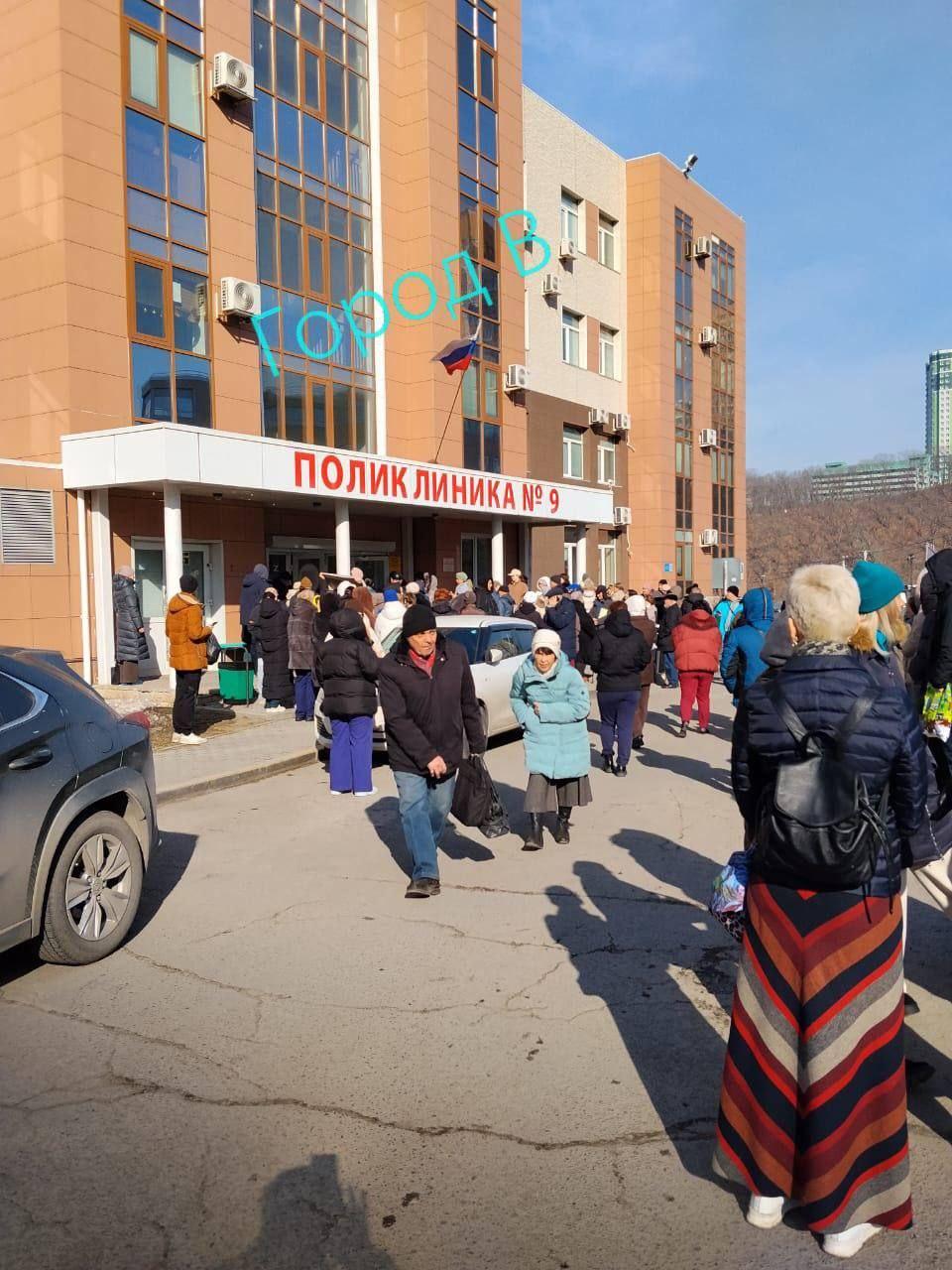 В поликлинике на улице Адмирала Горшкова во Владивостоке провели эвакуацию. По информации от очевидцев, посетителей и персонал вывели на улицу, где большая часть людей осталась ждать указаний за воротами учреждения.