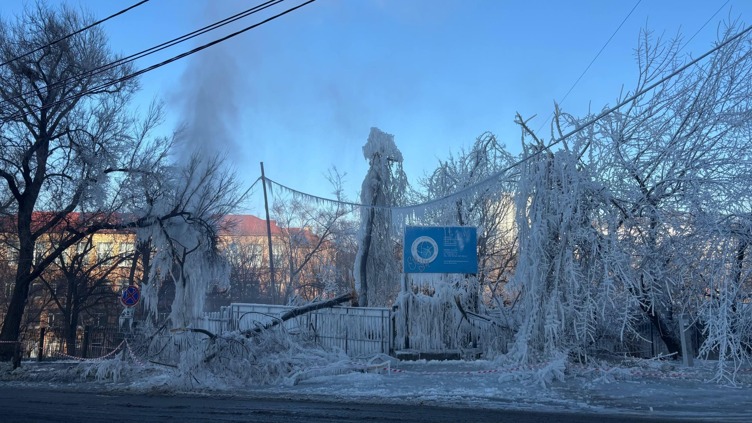 Улица Чапаева во Владивостоке в ледяном хаосе из-за порыва