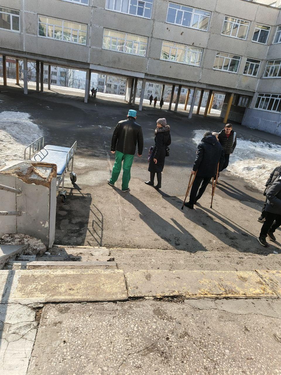 Один из пациентов, прибывший на приём, увидел на улице толпу людей после завершения эвакуации. По словам очевидцев, работа учреждения приостановлена как минимум на два часа.