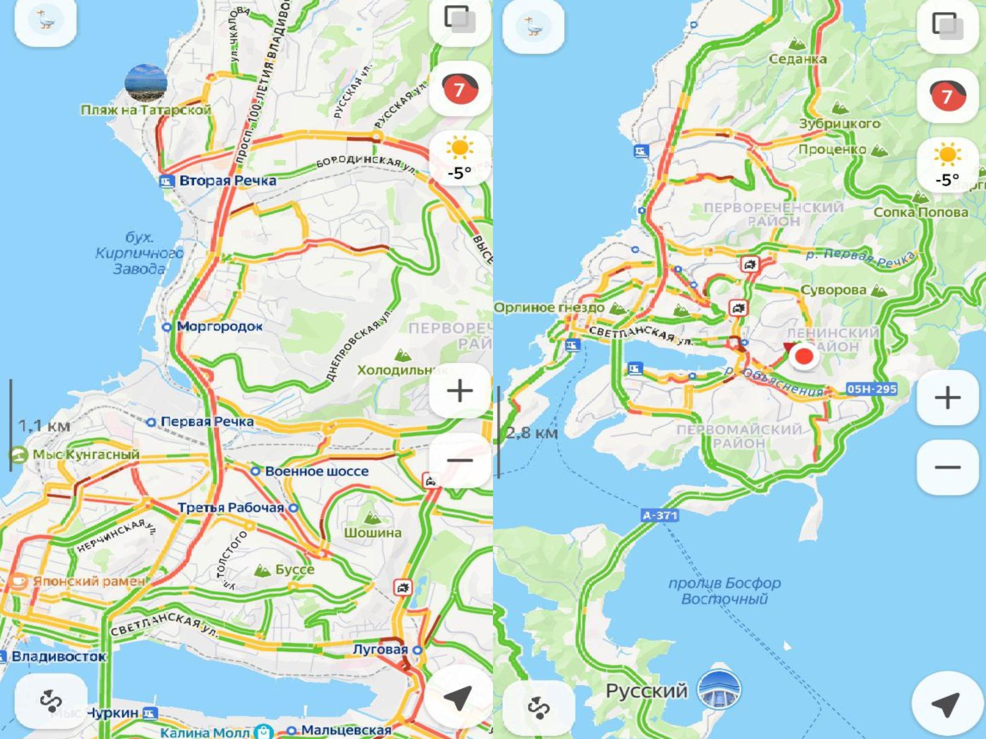 В последний день уходящего года дороги Владивостока едва избежали полного коллапса. К половине третьего дня системы мониторинга показывали высокую загруженность: «2ГИС» присвоил индекс 8 баллов, а «Яндекс.Карты» — 7 баллов.