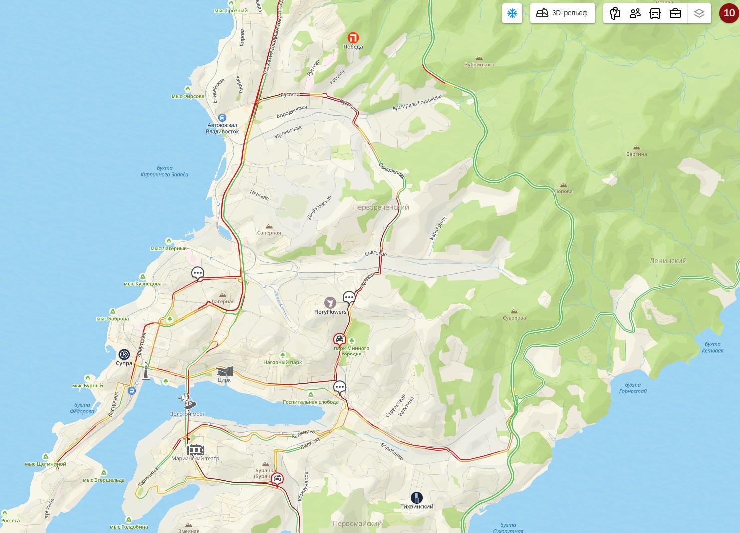 Согласно данным сервиса 2GIS, в дальневосточной столице зарегистрированы пробки максимальной интенсивности в 10 баллов. Массивные заторы образовались во всех частях города, а водители активно жалуются на состояние дорог.